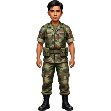 Filipino man army battle dress uniform and black combat boots full body 1990s 2000s emoji