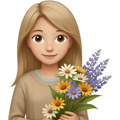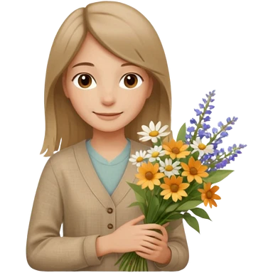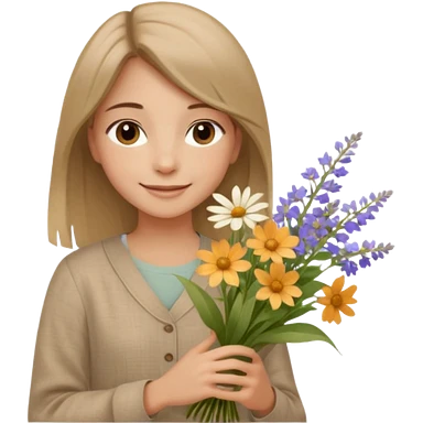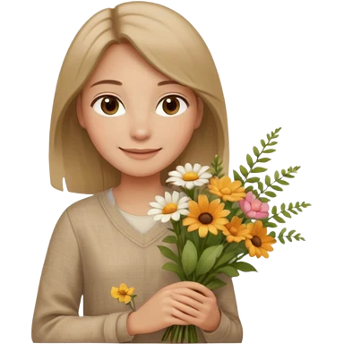 คาแรกเตอร์: สุภาพ อบอุ่น สบาย ๆ ลุคอิโมจิ: ดวงตาน้ำตาลเบจ นุ่มละมุน ผมตรงธรรมชาติ เสื้อผ้าลินิน / โทนเอิร์ธ ท่าถือดอกไม้ / ยิ้มอ่อน ฟีล: natural beauty, clean girl emoji