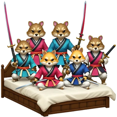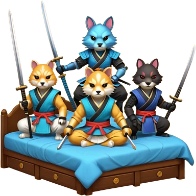 4 animaux samurai sur lit emoji