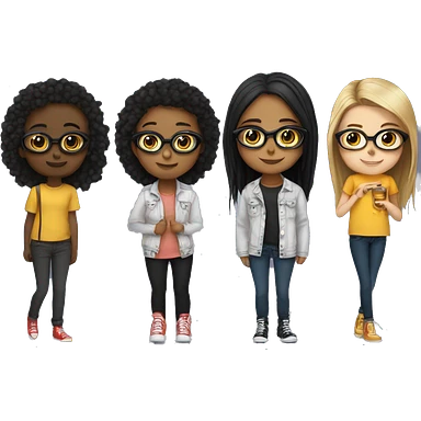 4 girls 2 have glasses 1's height is il small and black rest 3 r perfct and lil black doesn't have glasses emoji