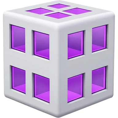 Сделай русскую панельку белого цвета. Она должна быть в виде куба, а также с окнами 3 на 3 на каждом фасаде. Некоторые окна неоново-фиолетовые. emoji