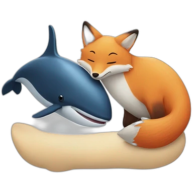 Make the rainbow fish glow a little larger, hugging or cuddling the fox emoji