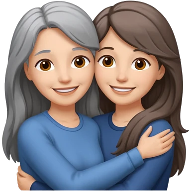 2 Frauen, die sich umarmen, davon 1 grauhaarig, 1 braunhaarig, lange Haare emoji
