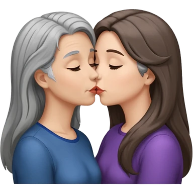 2 Frauen, die sich lieben davon 1 grauhaarig, 1 braunhaarig, lange Haare emoji | AI Emoji Generator