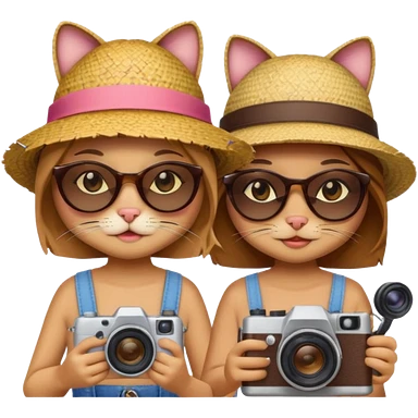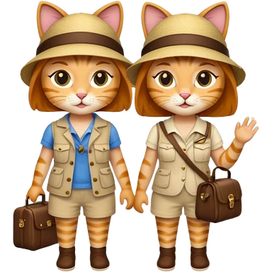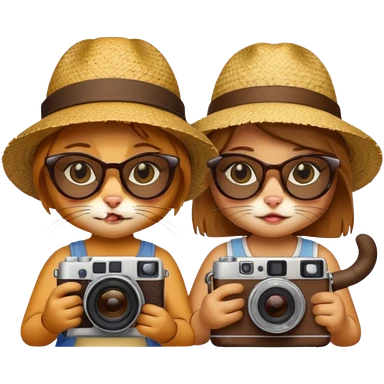 2 girl cats dressed up as tourists full body emoji | AI Emoji Generator