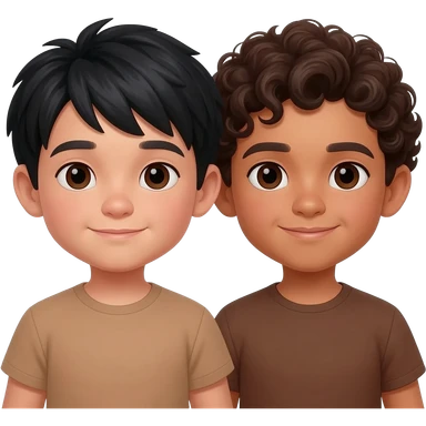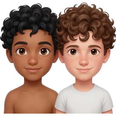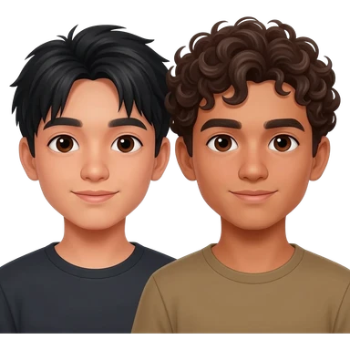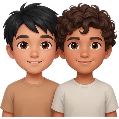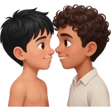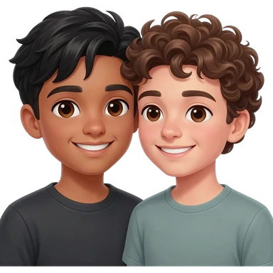 2 boys in love one tan black hair one flare skinned and brown curly hair, both with dark brown eyes emoji