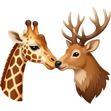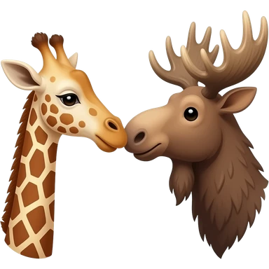 Einfacher Giraffenkopf und Elchkopf küssen sich emoji