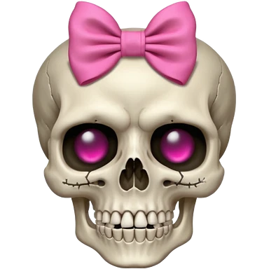 Skeleton head that is crazy with a pink bow on its forehead emoji