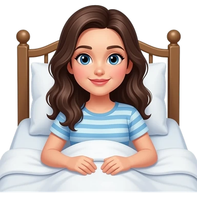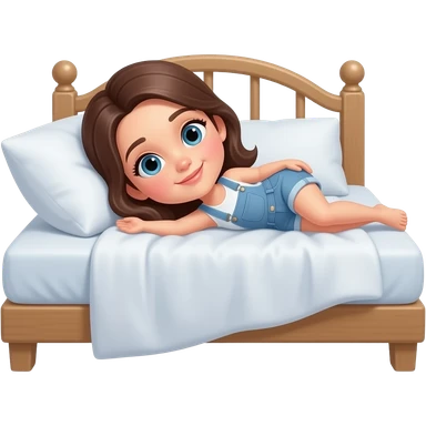 침대에 누워 있는 캐주얼한 스타일의 귀여운 여성 이모지 emoji