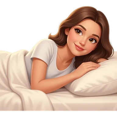 침대에 누워 있는 캐주얼한 스타일의 귀여운 여성 emoji