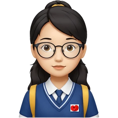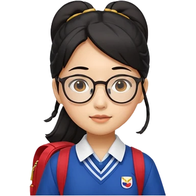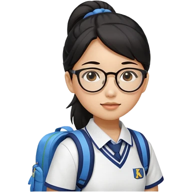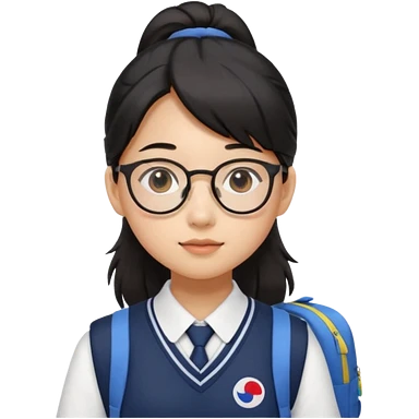 검정 머리 묶은 동양인 한국 교복 단정한 여자 / 안경 / 백팩 emoji