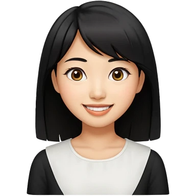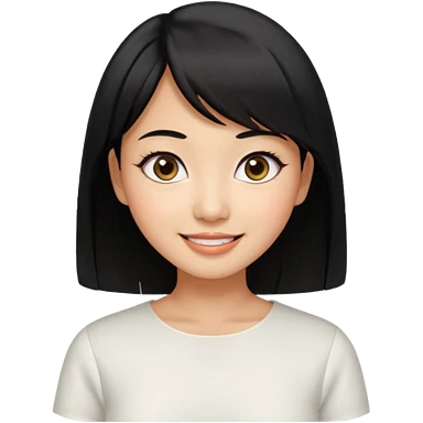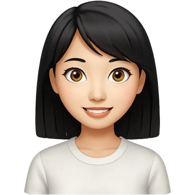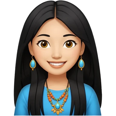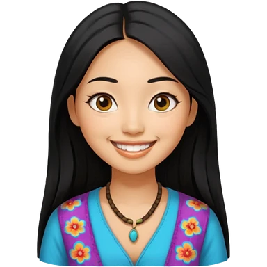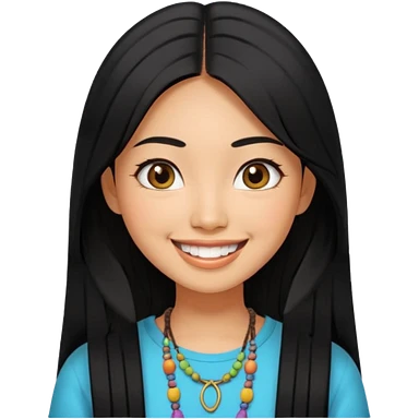 20 yr old asian woman hair trendy clothes center part big eyes big smile tanned skin straight black hair hippie part hair emoji | AI Emoji Generator
