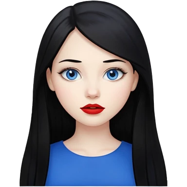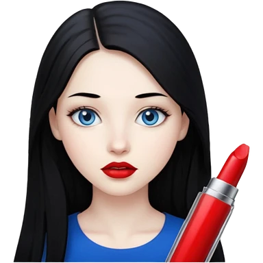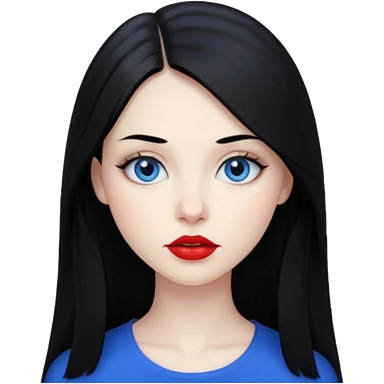 20 yr old woman long straight black hair, pale skin, blue eyes, red lipstick emoji