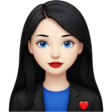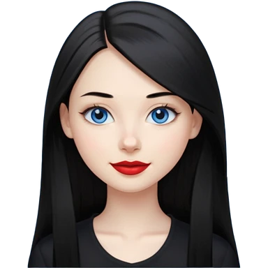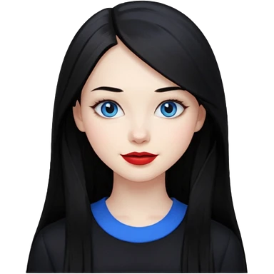 20 yr old woman long straight black hair, pale skin, blue eyes, red lipstick, black clothes, small smile, bangs emoji | AI Emoji Generator