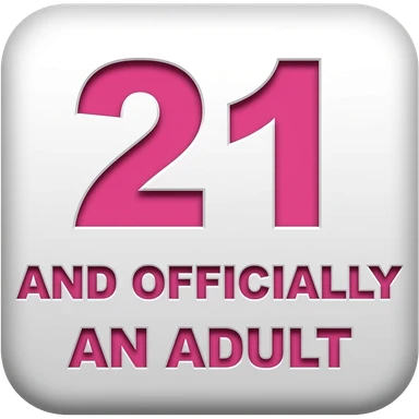 21 AND OFFICIALLY AN ADULT WHITE WHIT PINK SQUARE SIGN emoji | AI Emoji Generator