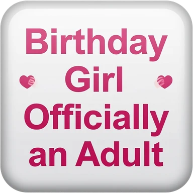 BIRTHDAY GIRL AND OFFICIALLY AN ADULT WHITE WITH PINK LETTERS SQUARE SIGN emoji