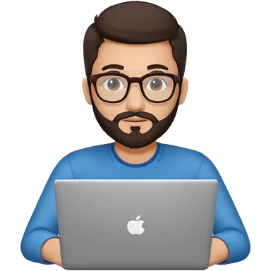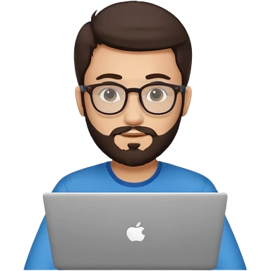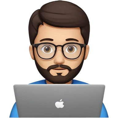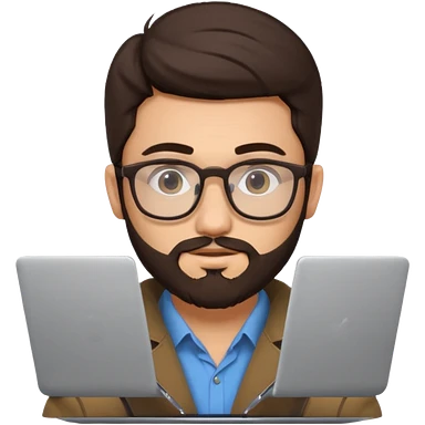 23 year old Azerbaijani man with very dark brown hair and beard with glasses and laptop , light yellow skin face, not European, glasses like a harry potter emoji | AI Emoji Generator