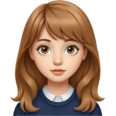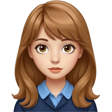 24세 광고홍보전공하는 대학생 여자, 앞머리가 있는 회갈색의 긴 웨이브 머리, 같은 회갈색 컬러의 눈썹, 큰 눈에 아이라인이 그려져있고 동그란 코에 적당한 입술 두깨, 시크한 표정 emoji