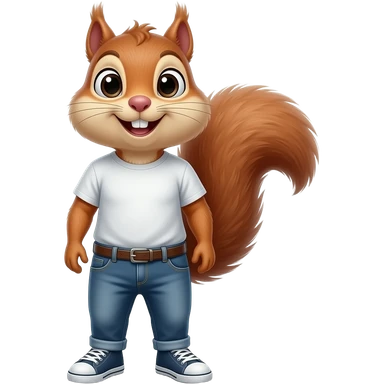 25 year old chipmunk stand straight wear tshirt and jeans sneakers emoji | AI Emoji Generator