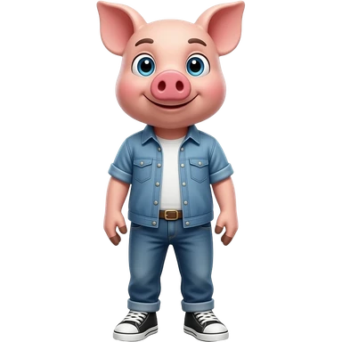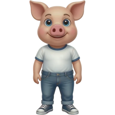 25 year old pig stand straight wear shirt and jeans sneakers emoji