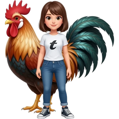 25 year old female rooster stand straight wear tshirt and jeans sneakers emoji