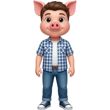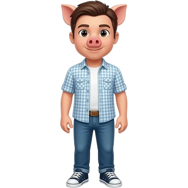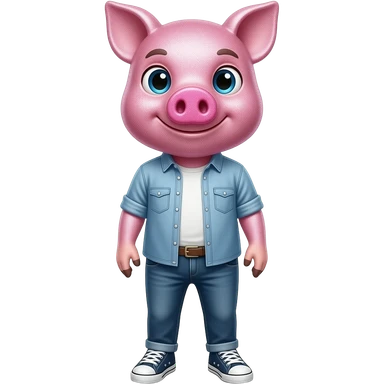 25 year old pig stand straight with fade haircut wear shirt and jeans sneakers emoji | AI Emoji Generator