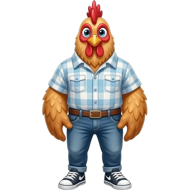 25 year old chicken stand straight wear shirt and jeans sneakers emoji