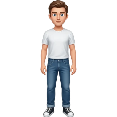 25 year old white chicken stand straight with tshirt and jeans sneakers emoji