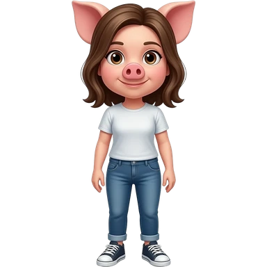 25 year old female pig stand straight wear tshirt and jeans sneakers emoji