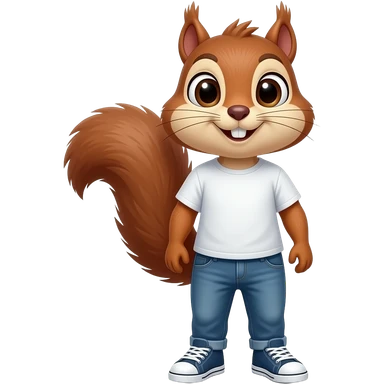 25 year old squirrel stand straight wear tshirt and jeans sneakers emoji