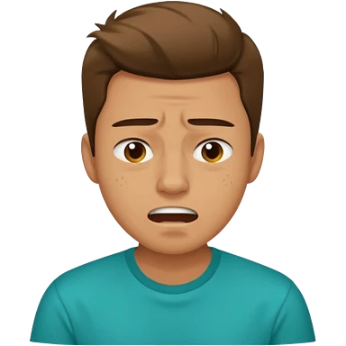 25 year old woman in orange shirt, she looks like she is in pain. She has brown hair emoji | AI Emoji Generator