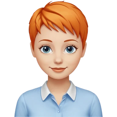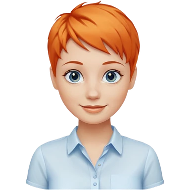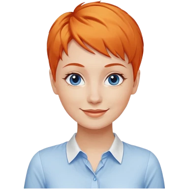 27 year old white woman, orange hair, pixie cut, blue eyes, wearing a white blouse emoji