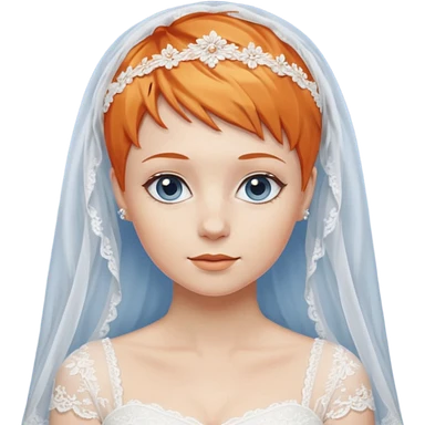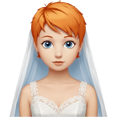 27 year old woman, orange hair, pixie cut, blue eyes, wedding dress emoji