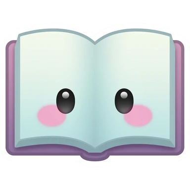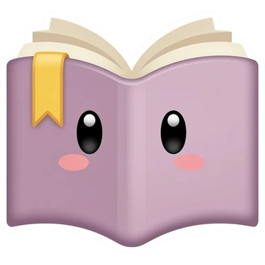 Книга - плоский Стикер дизайн, мультяшная иллюстрация, пастельные цвета, округлые формы, без глаз, без лица, толстый мягкий контур, каваи стиль emoji