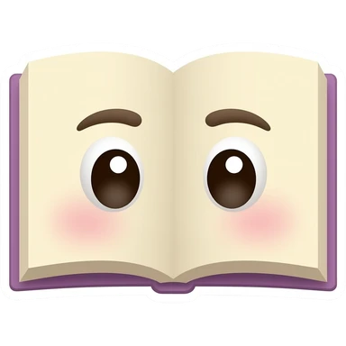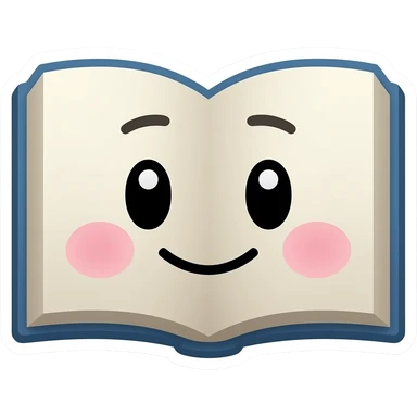 Книга - 2d Стикер-дизайн, мультяшная иллюстрация, пастельные цвета, округлые формы, без глаз и ртов, толстый мягкий контур emoji