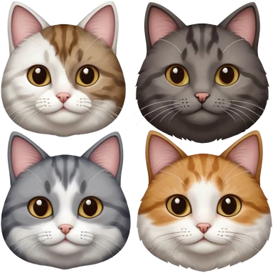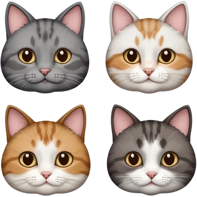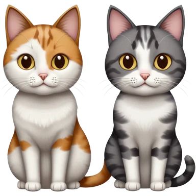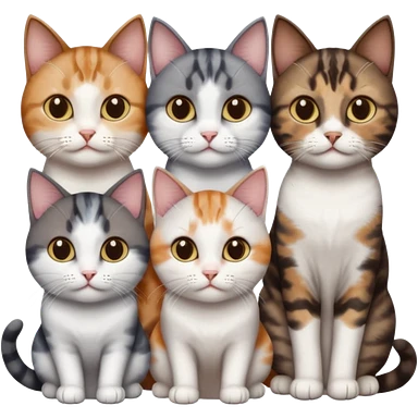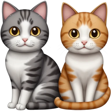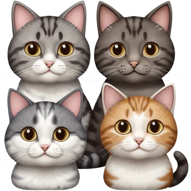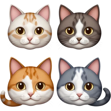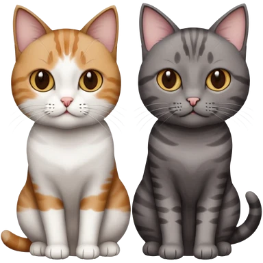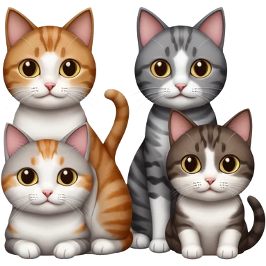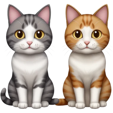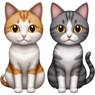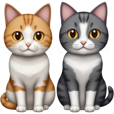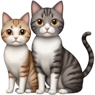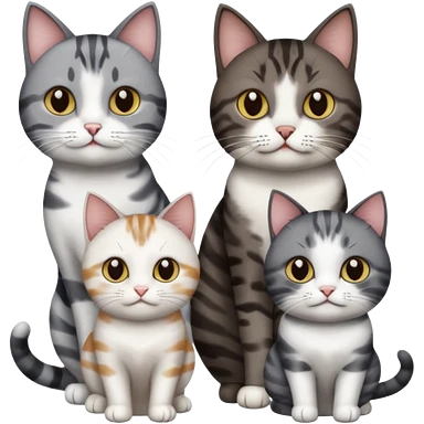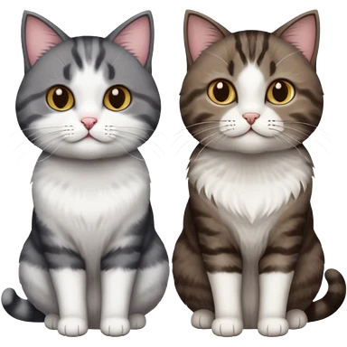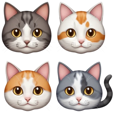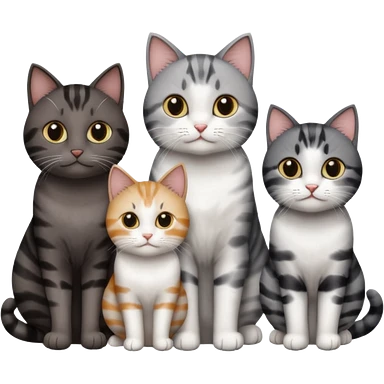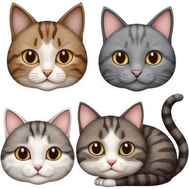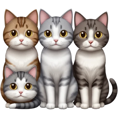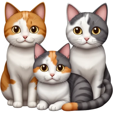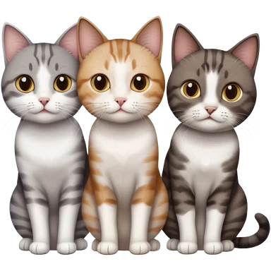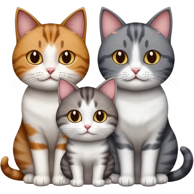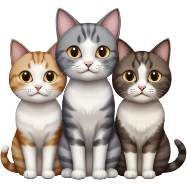 3 different coloured short haired cats including; a dark brown tabby and white cat, and a dark grey and white emoji