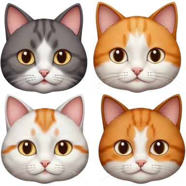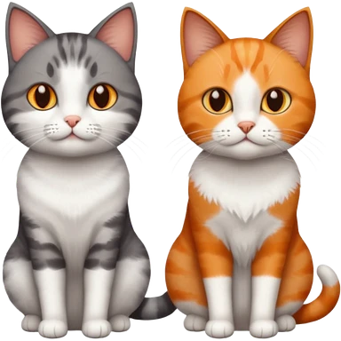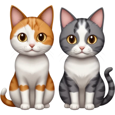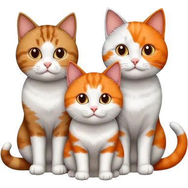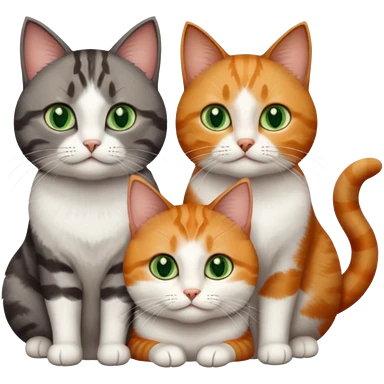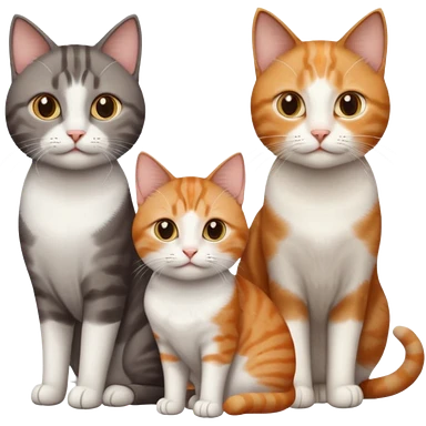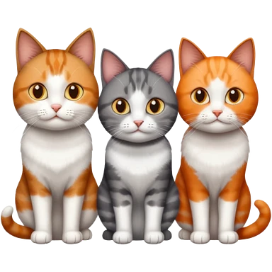 3 different coloured short haired cats including; a dark brown tabby and white cat, and a dark grey and white and a ginger and white emoji