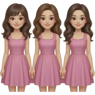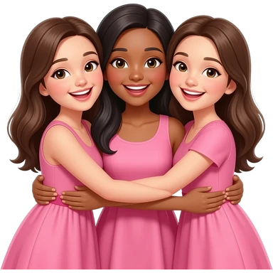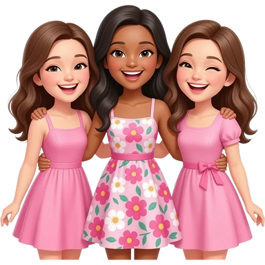 3 girls with pink frock happily standing with hug with same skin tone emoji