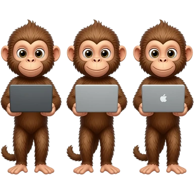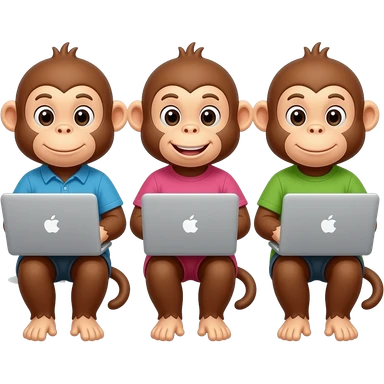 3 petits singes assis cote a cote qui tapent sur des ordinateurs portables emoji