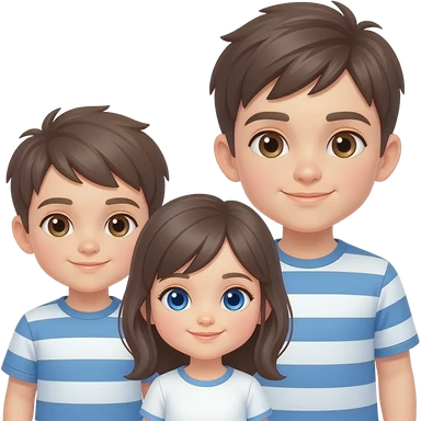3 enfants, 1 garçon plus agé, 1 garçon moins agé que le premier et 1 fille la plus jeune, les garçons ont les yeux marrons, la fille les yeux bleus emoji