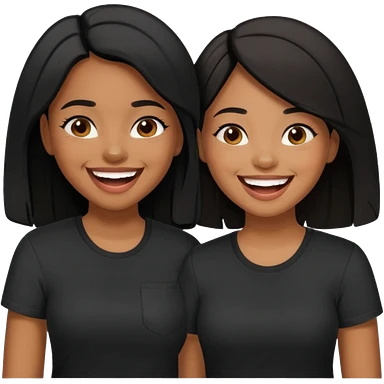 Brown skin colored sisters with not same height with black hair and black shirts having fun with eachother emoji