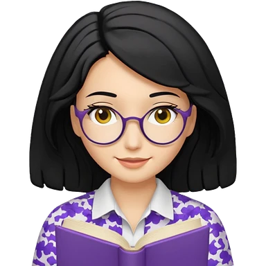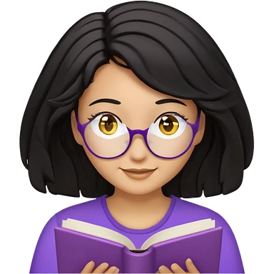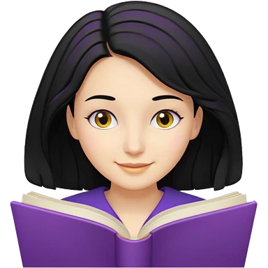 검정머리에 책읽고있는 여자. 해줘. 그리고 그 책으로 얼굴 반은 가린듯한 머리는 약간 파마 앞머리 없고 그리고 너무 무섭게 말고 책 읽는다고 얼굴 반은 가린듯한 책은 흰색에 보라색 노란색 섞여있고. 약간 미소 옷은 흰색. 아이폰 이모티콘 형태로 부탁 emoji