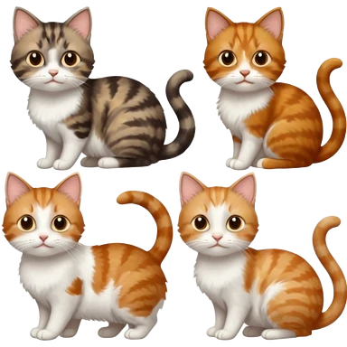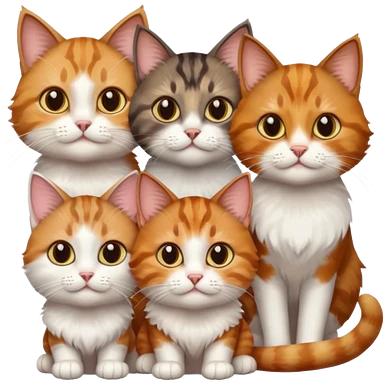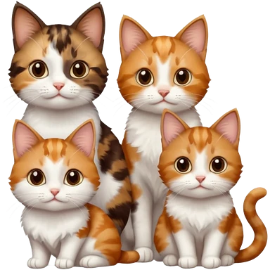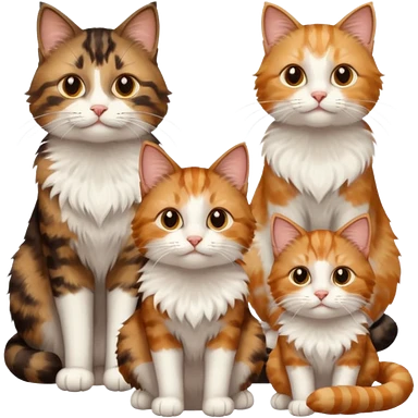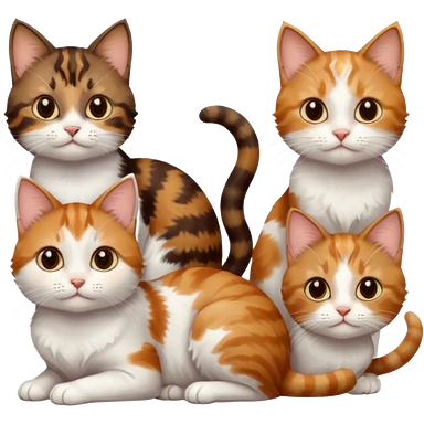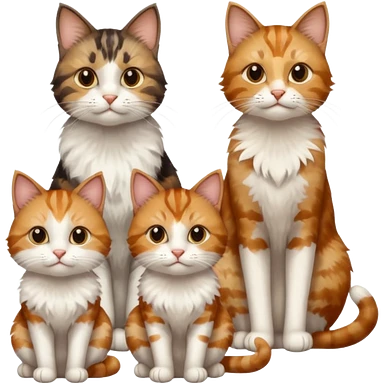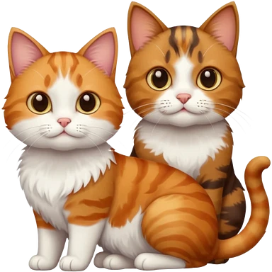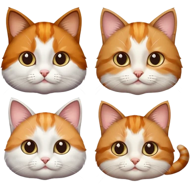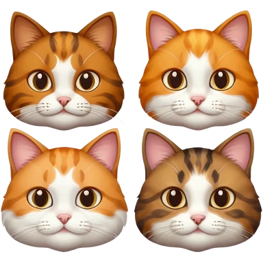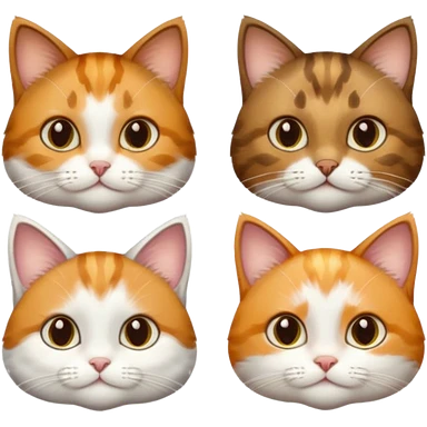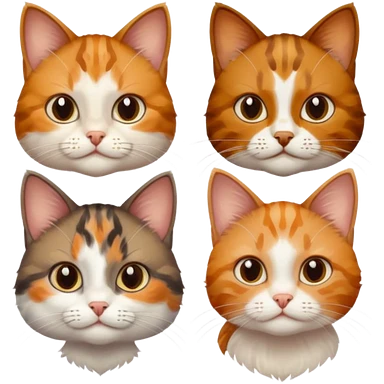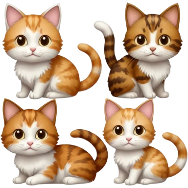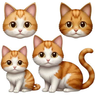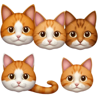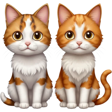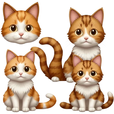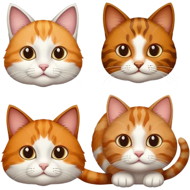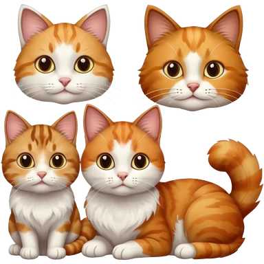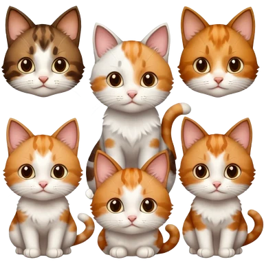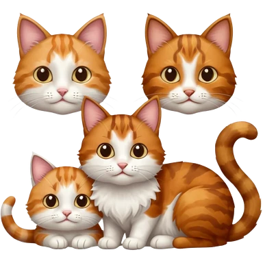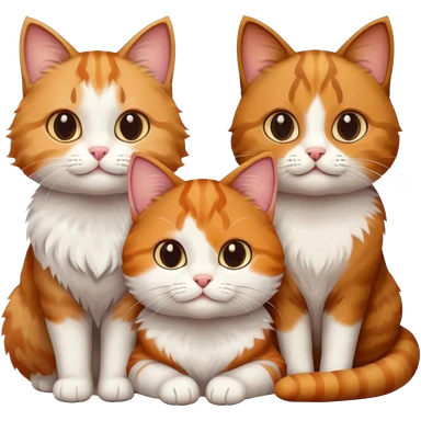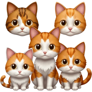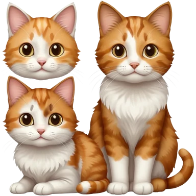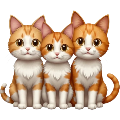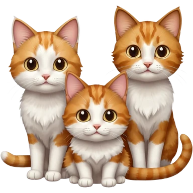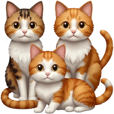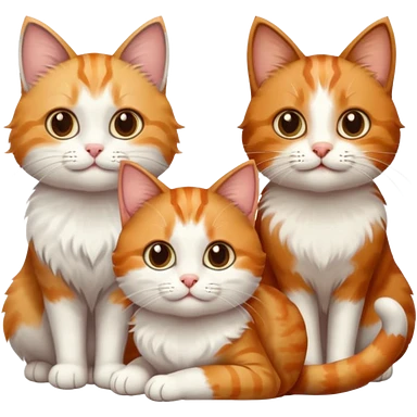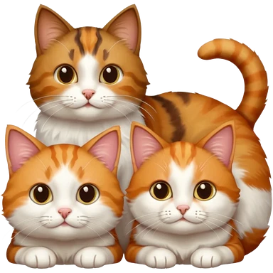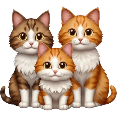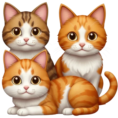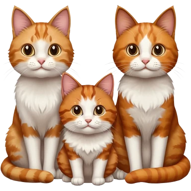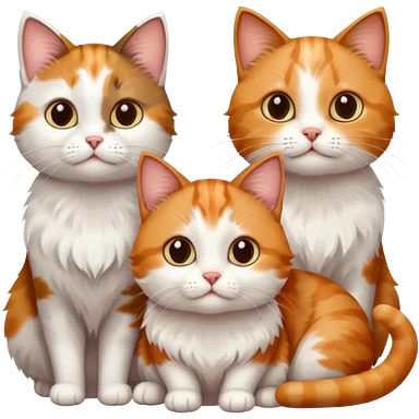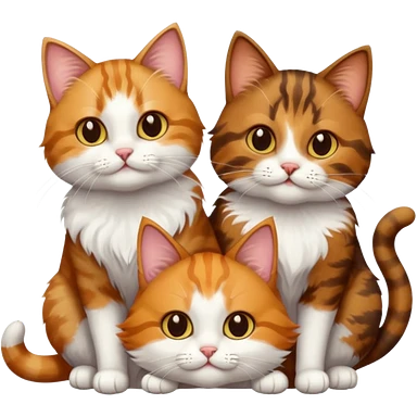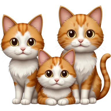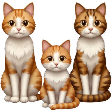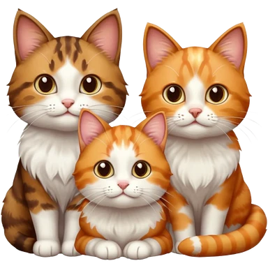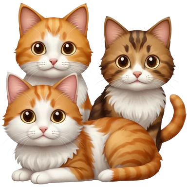 3 cats different colours including brown tabby and white, light patchy calico, and ginger and white emoji | AI Emoji Generator