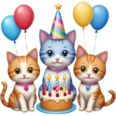 3 cats at a birthday party emoji