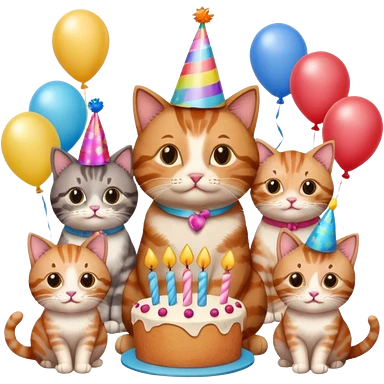 3 cats and a kitten at a birthday party emoji