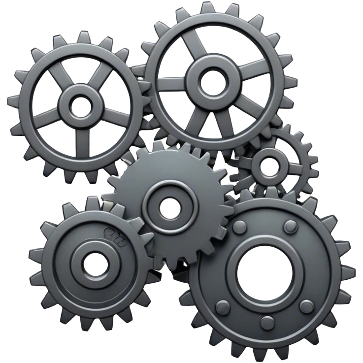 3 cogs, one big cog at the top and 2 small cogs next to each other. emoji | AI Emoji Generator