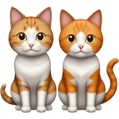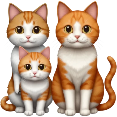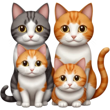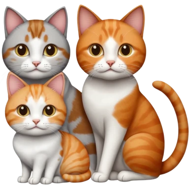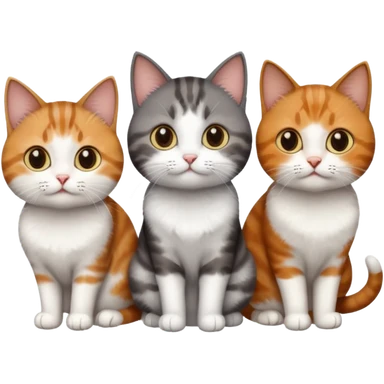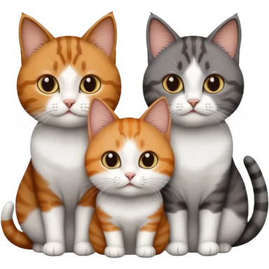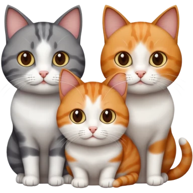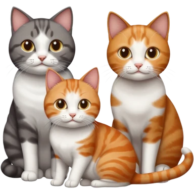 3 different coloured short haired cats including; a dark brown tabby and white cat, and a dark grey and white and a ginger and white emoji