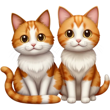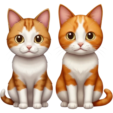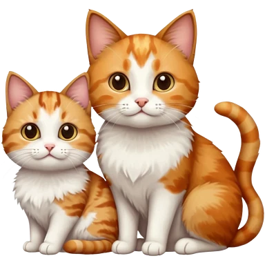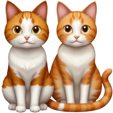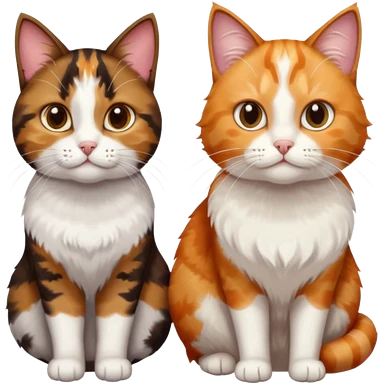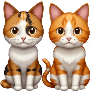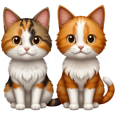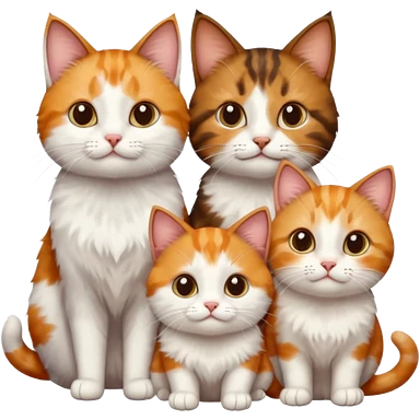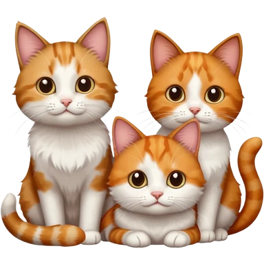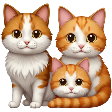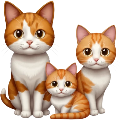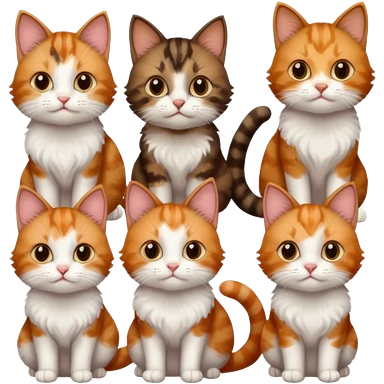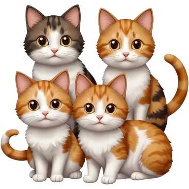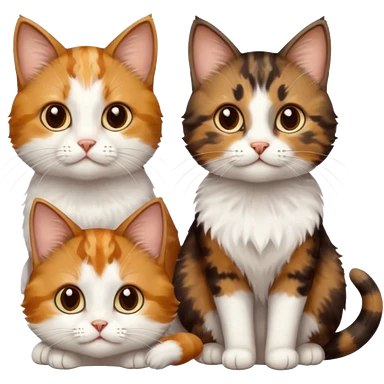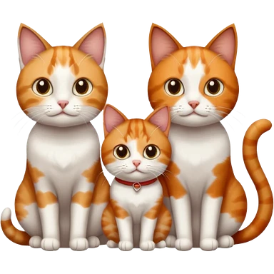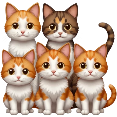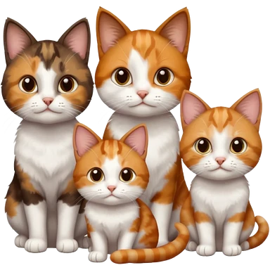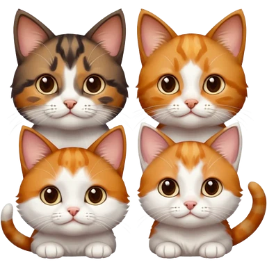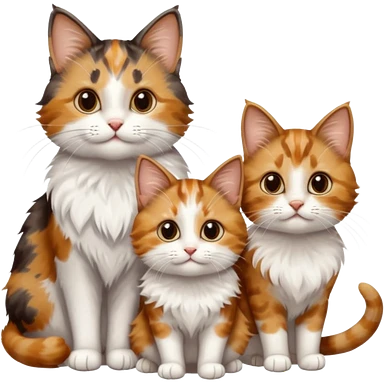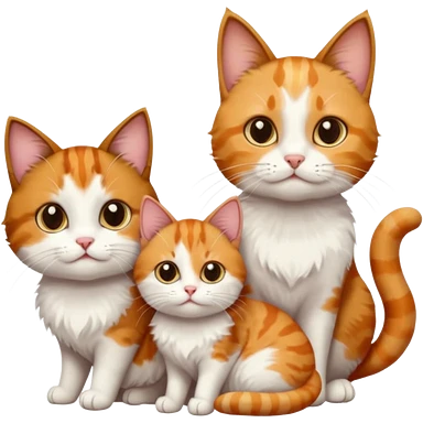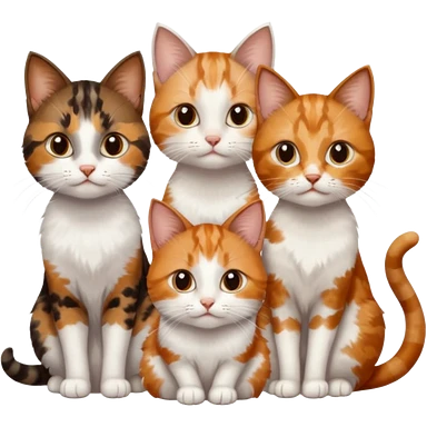3 different coloured small cats including a dark brown tabby and white, and a patchy calico, and a ginger and white emoji