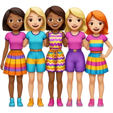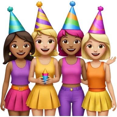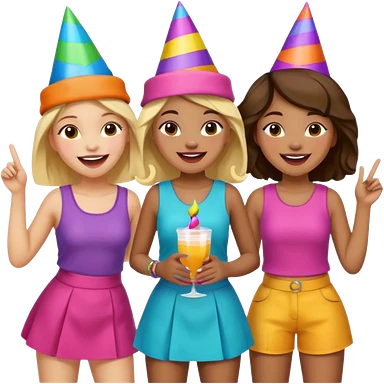 3 friends having fun, one with black hair, 2 with brown hair, girly style emoji