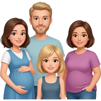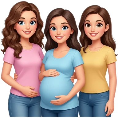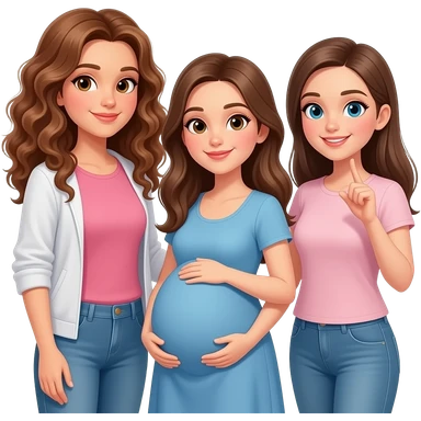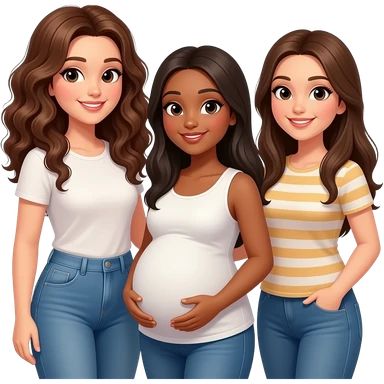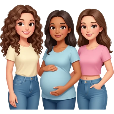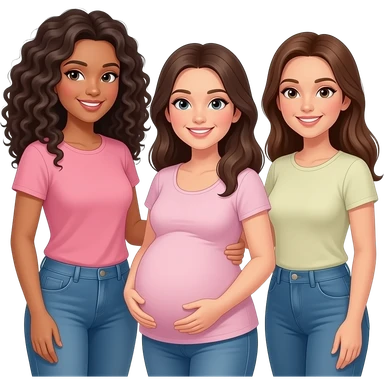 3 girl friends: 1 tall curly hair, 1 pregnant brunette American/latino, 1 brunette Italian emoji | AI Emoji Generator